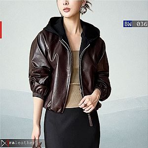 Jaket Kulit Wanita BW036 Removable Hoodie - raleather® Garut
