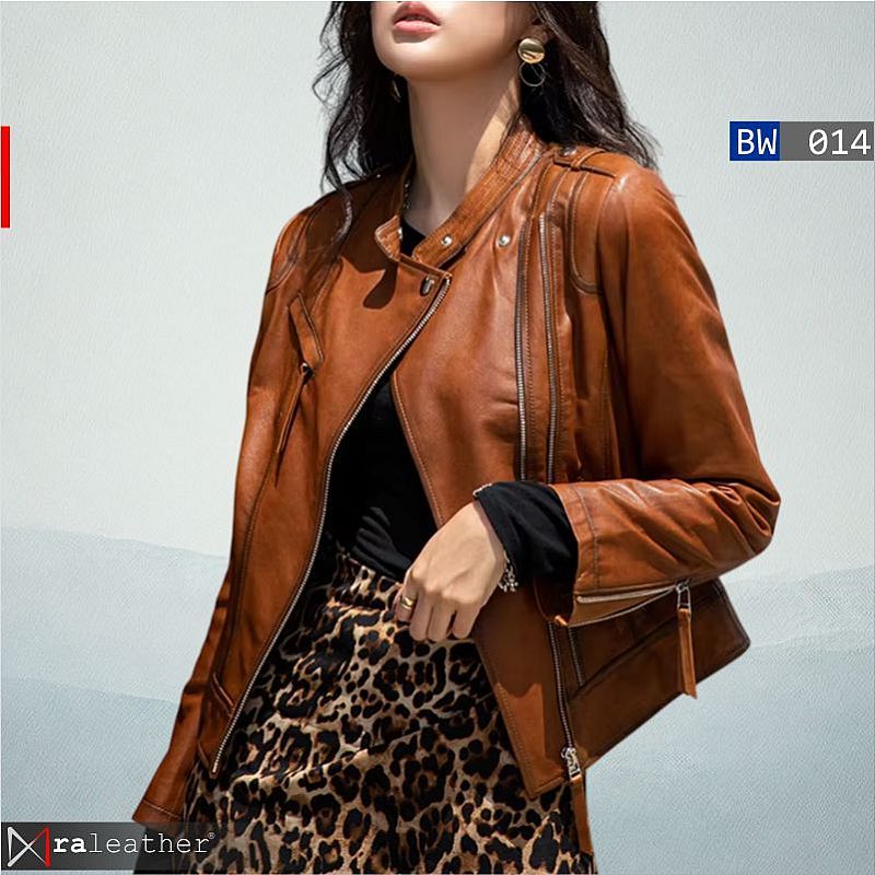 Tampil berani dan penuh karakter dengan jaket kulit wanita BW014 dari RALEATHER. Terinspirasi dari gaya biker klasik, model ini hadir dengan potongan tegas dan detail fungsional yang mencerminkan kebebasan dan kekuatan.