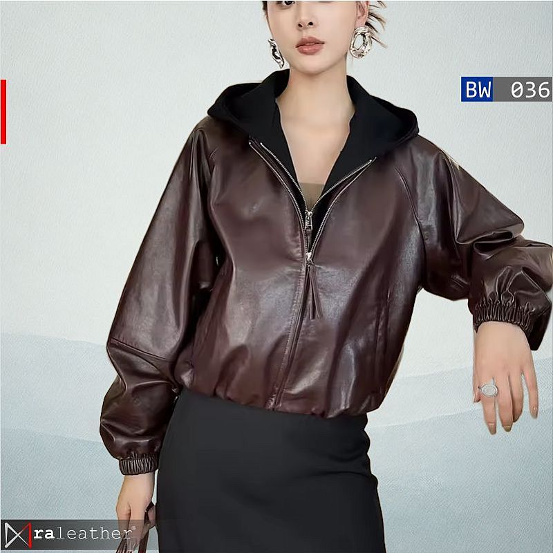 Jaket Kulit Wanita BW036 Removable Hoodie - raleather® Garut