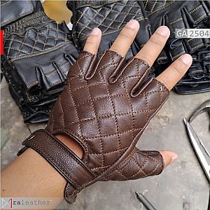 Sarung Tangan Kulit Half-Finger Cokelat Detail Quilted GA2504